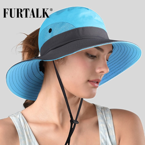 FURTALK Safari Hats for Women Summer Sun Wide Brim UV UPF Ponytail Outdoor Hunting Fishing Hiking Hat SH053
